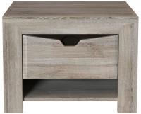 Прикроватная тумба Гарда дополнена открытой полкой и ящиком. Шариковые направляющие надежно удерживают ящик при открывании.